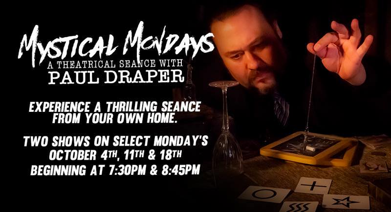 Virtual Séance with mentalist Paul Draper: October 4, 11 and 18 at 7:30pm and 8:45pm (Mountain Time). Buy your tickets here. See Paul Draper at Fear Factory’s historic industrial location and learn about the history of the séance and experience a theatrical experience from your own home…