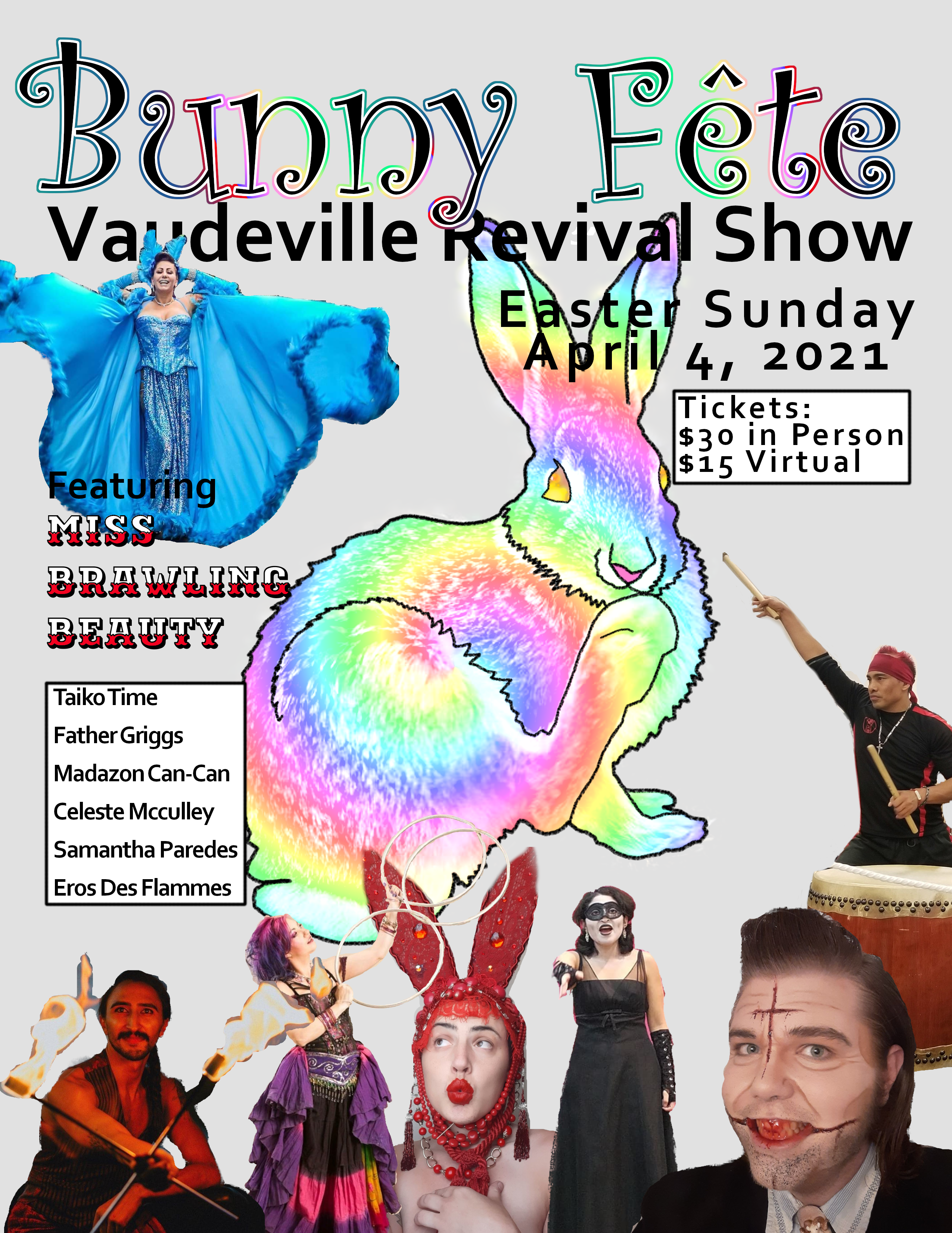 - Bunny Fête – Irreverent Easter themed vaudeville Revival and Burlesque Show, featuring the world-renowned Miss Brawling Beauty and Taiko Tyme. Inquire about other holiday themes.